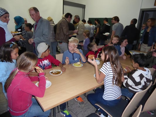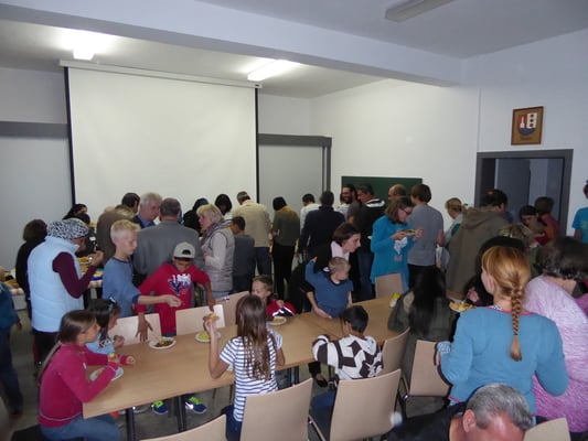 Alle Flüchtlinge waren der Einladung des Helferkreises gefolgt. Eine große Zahl von Helfern begrüßte die Gäste und hieß sie herzlich willkommen.